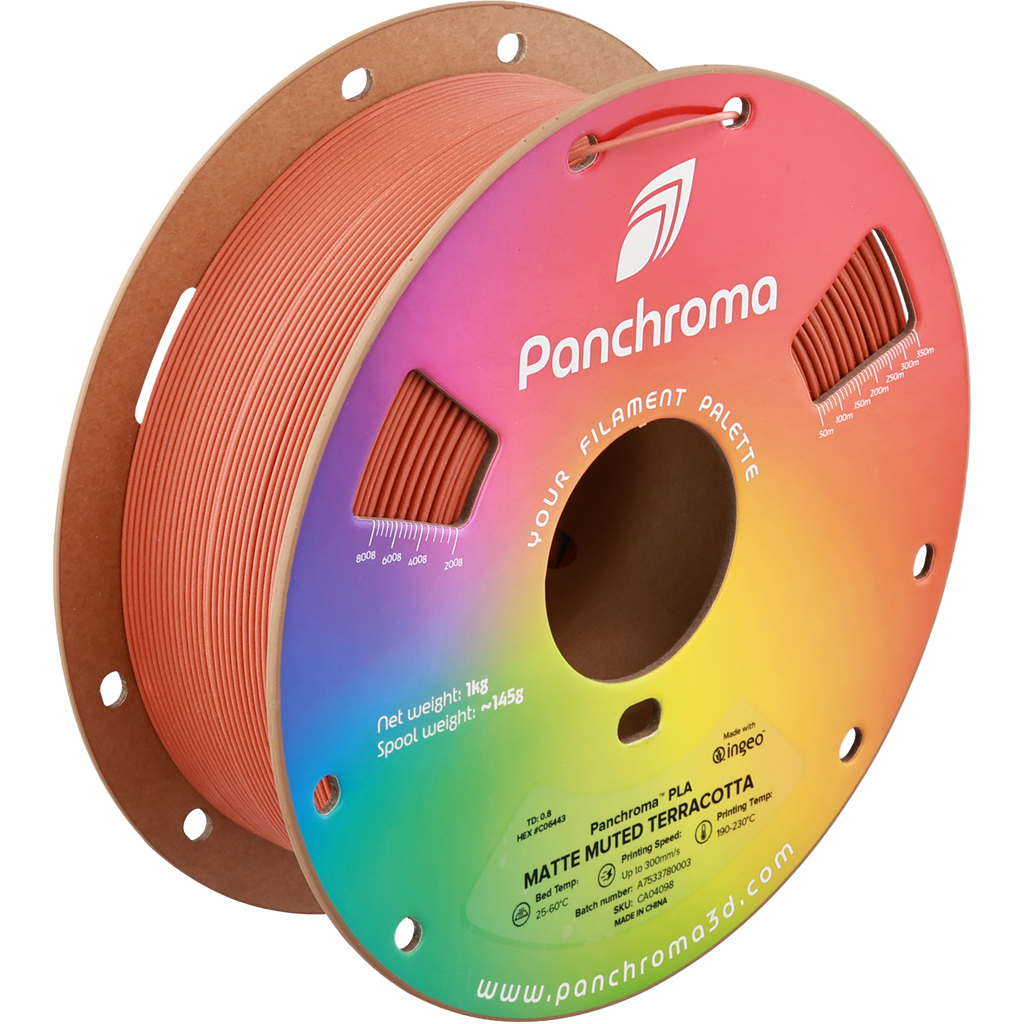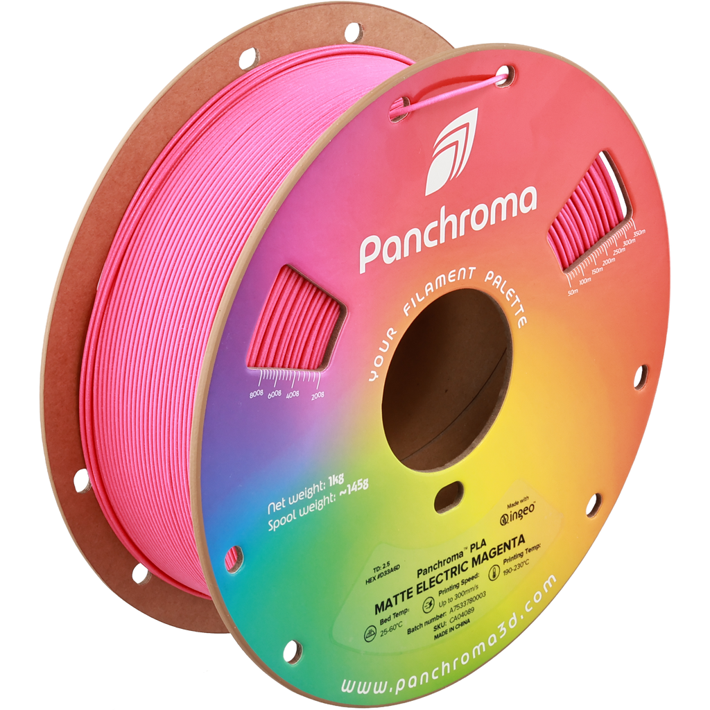 Panchroma™ Matte is a bioplastic based 3d printing filament designed from the ground up to create the next generation of PLA, providing ease of use, printing quality, speed and reliability.