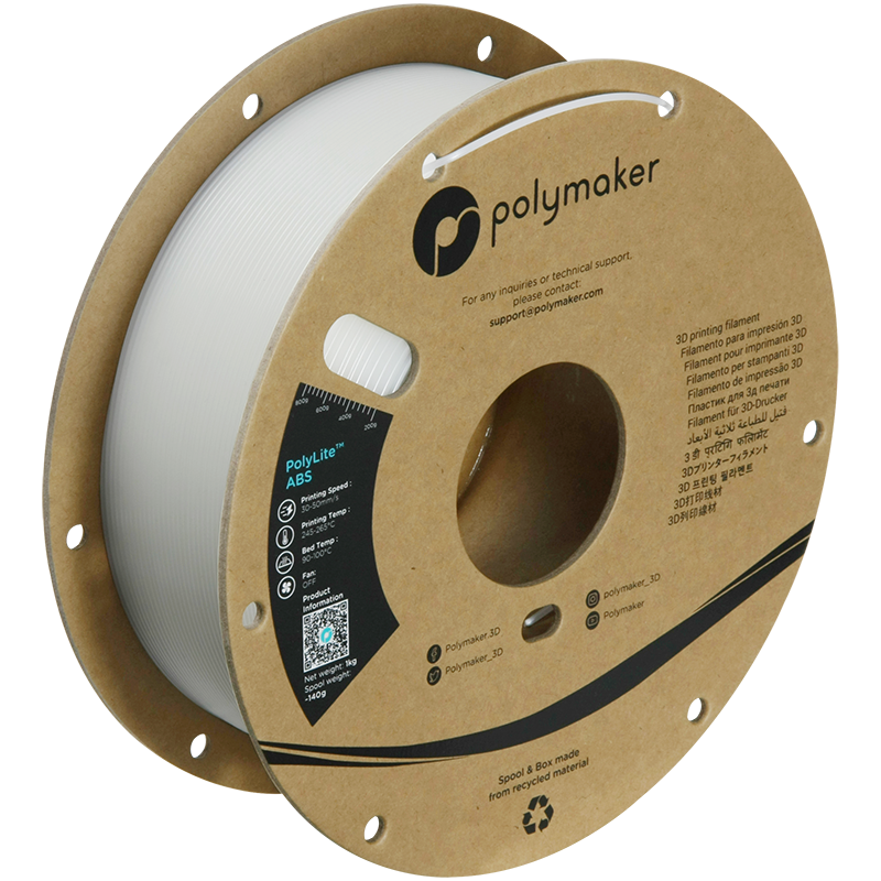 PolyLite™ ABS is made with a specialty bulk-polymerized ABS resin, which has significantly lower volatile content compared to traditional ABS resins. It delivers excellent printing quality with minimal odor during printing.